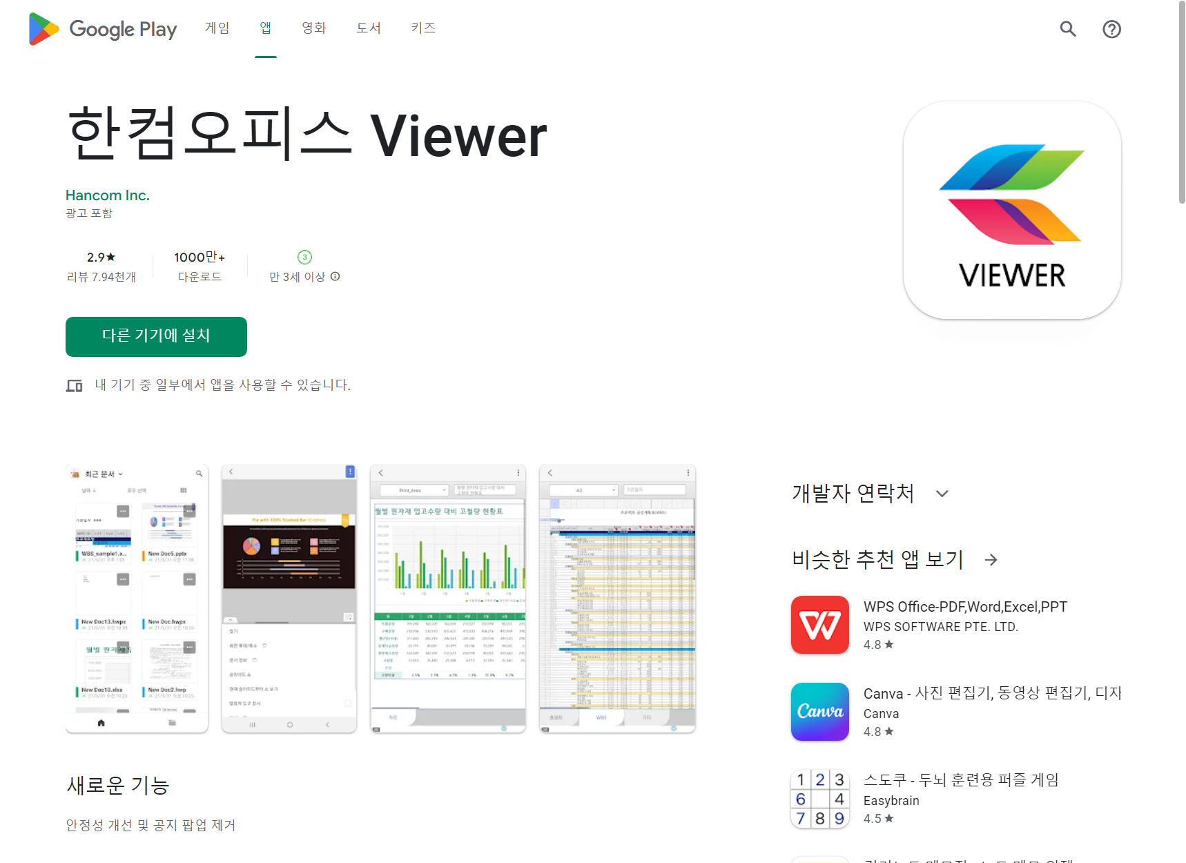 한컴오피스 Viewer는 다양한 모바일 디바이스에서 한컴오피스 및 Microsoft 오피스 포맷의 문서를 빠르고 편리하게 확인할 수 있는 응용 프로그램입니다. Microsoft 오피스 문서에 대한 높은 호환성을 제공하며, 별도의 프로그램 없이 한글 및 PDF 문서도 확인할 수 있습니다.