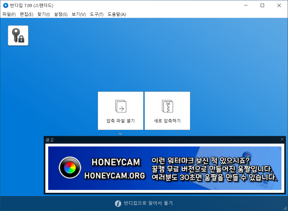반디집은 누구든 어디서나 자유롭게 사용할 수 있는 무료 압축 프로그램입니다.