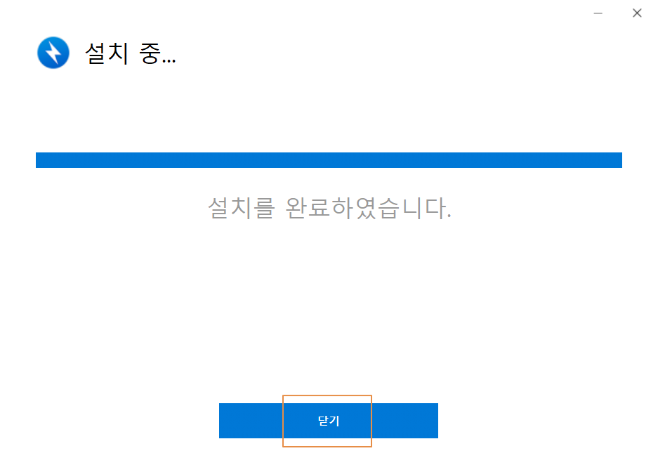 순식간에 설치가 완료되었습니다. <닫기>를 누릅니다.
