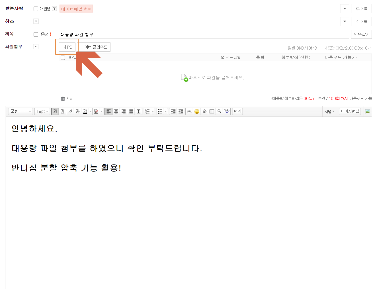 네이버 메일에 대용량 파일로 첨부가 되었습니다. 참 쉽죠?