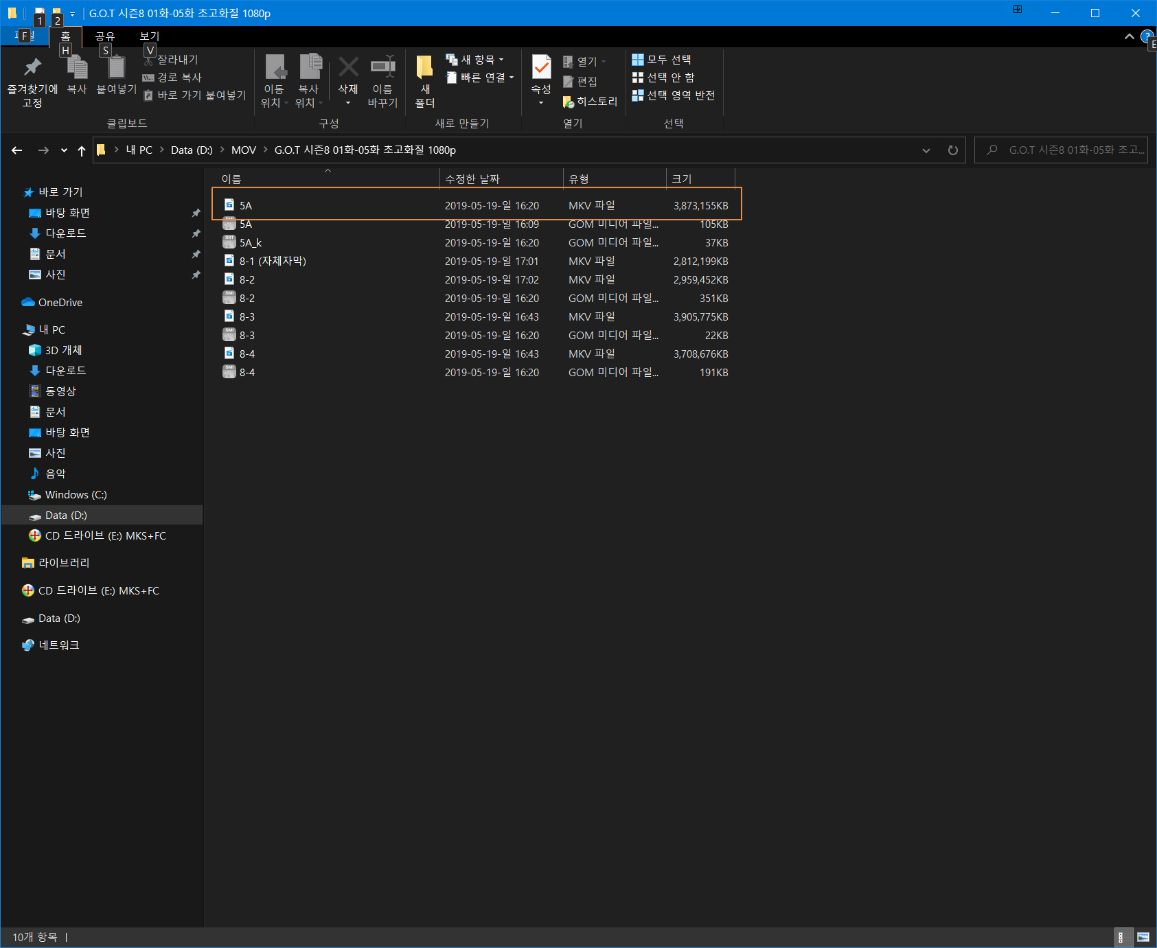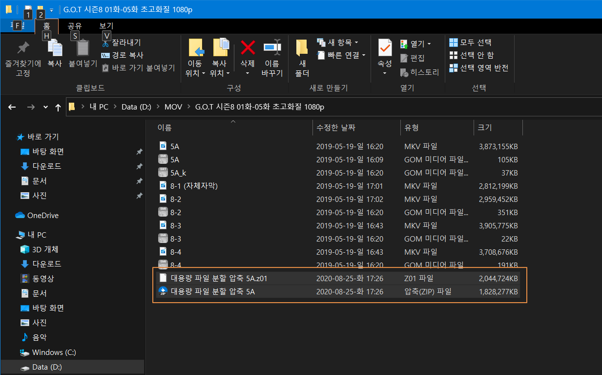 압축 파일 경로를 확인해 보면 2개의 파일로 분할 압축이 정상적으로 완료되었습니다.