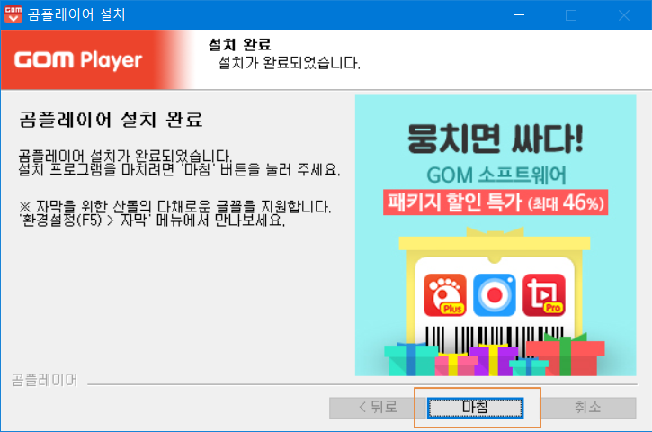 곰플레이어(GOM Player)를 실행하였습니다. 사용하고나서 프로그램을 닫으면 엔딩 광고가 나타납니다. 확인해 볼까요?