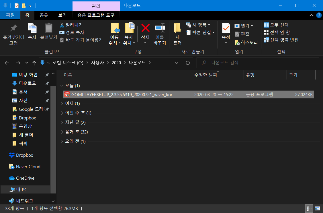 다운로드가 완료되면 내려받은 폴더로 이동합니다. 설치 파일을 실행합니다.
