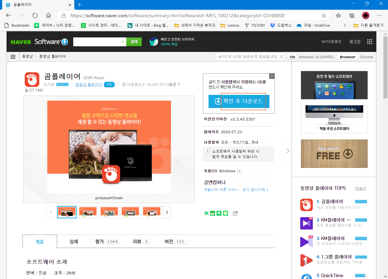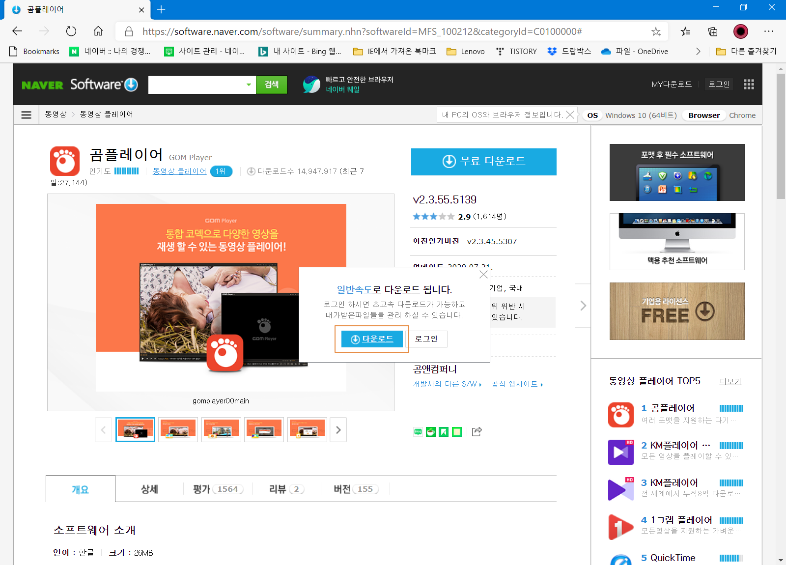 곰플레이어(GOM Player)를 다운로드하시려면 여기를 참조하세요.
