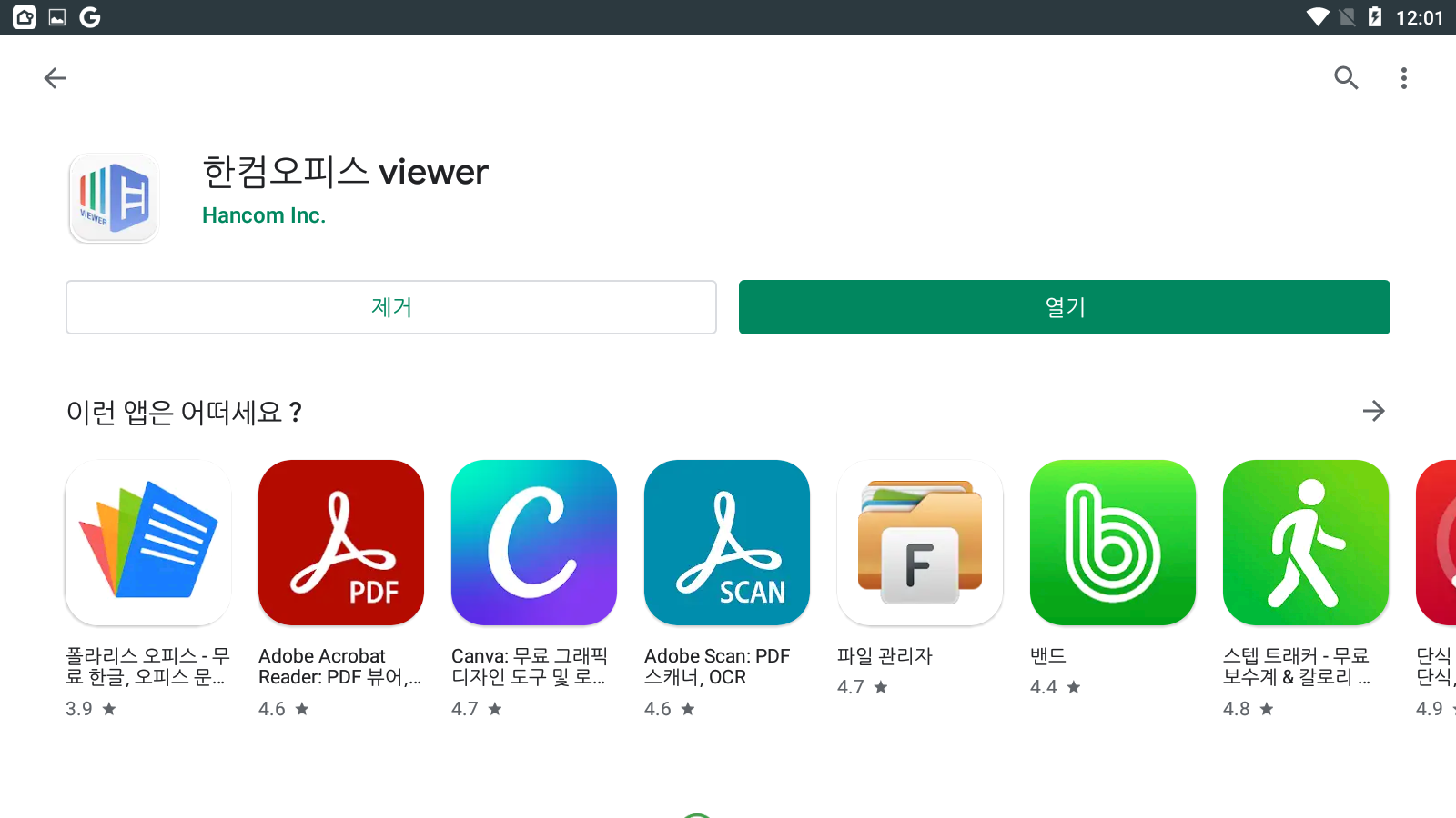 구글 플레이 스토어의 한컴오피스 뷰어(Viewer), HWP 뷰어 다운로드를 하시려면 여기를 참조하세요.