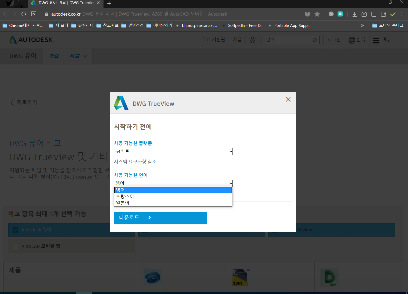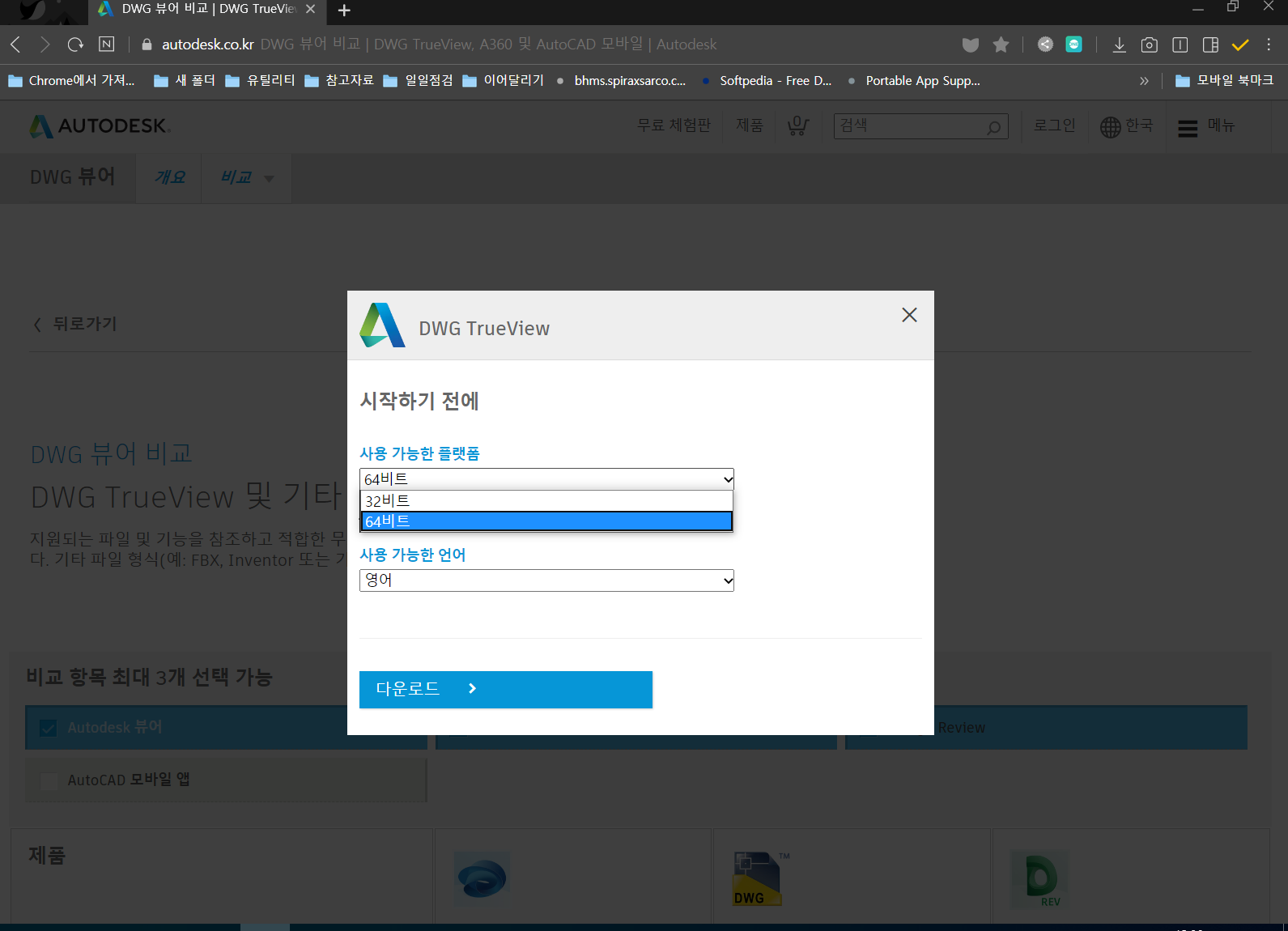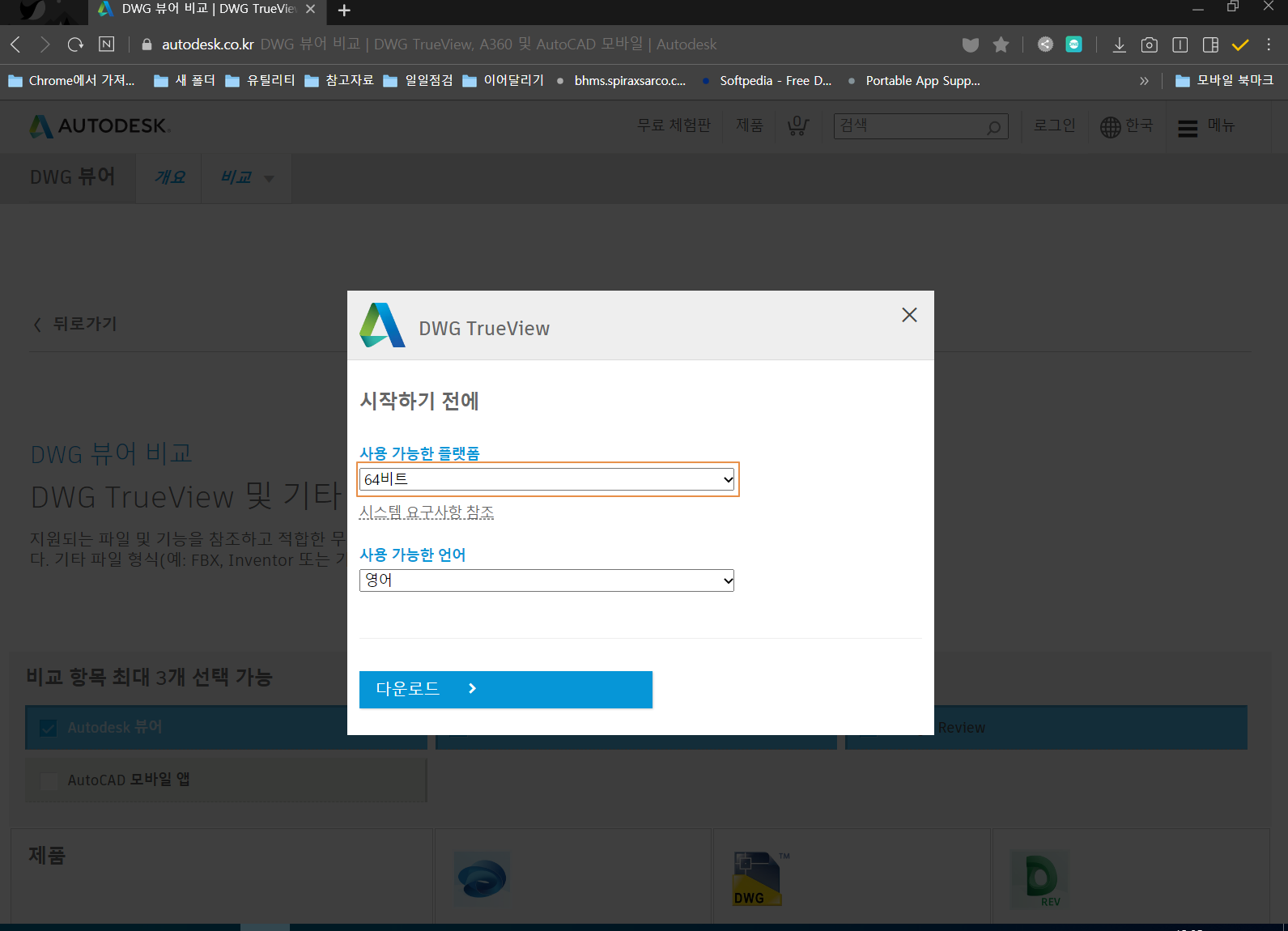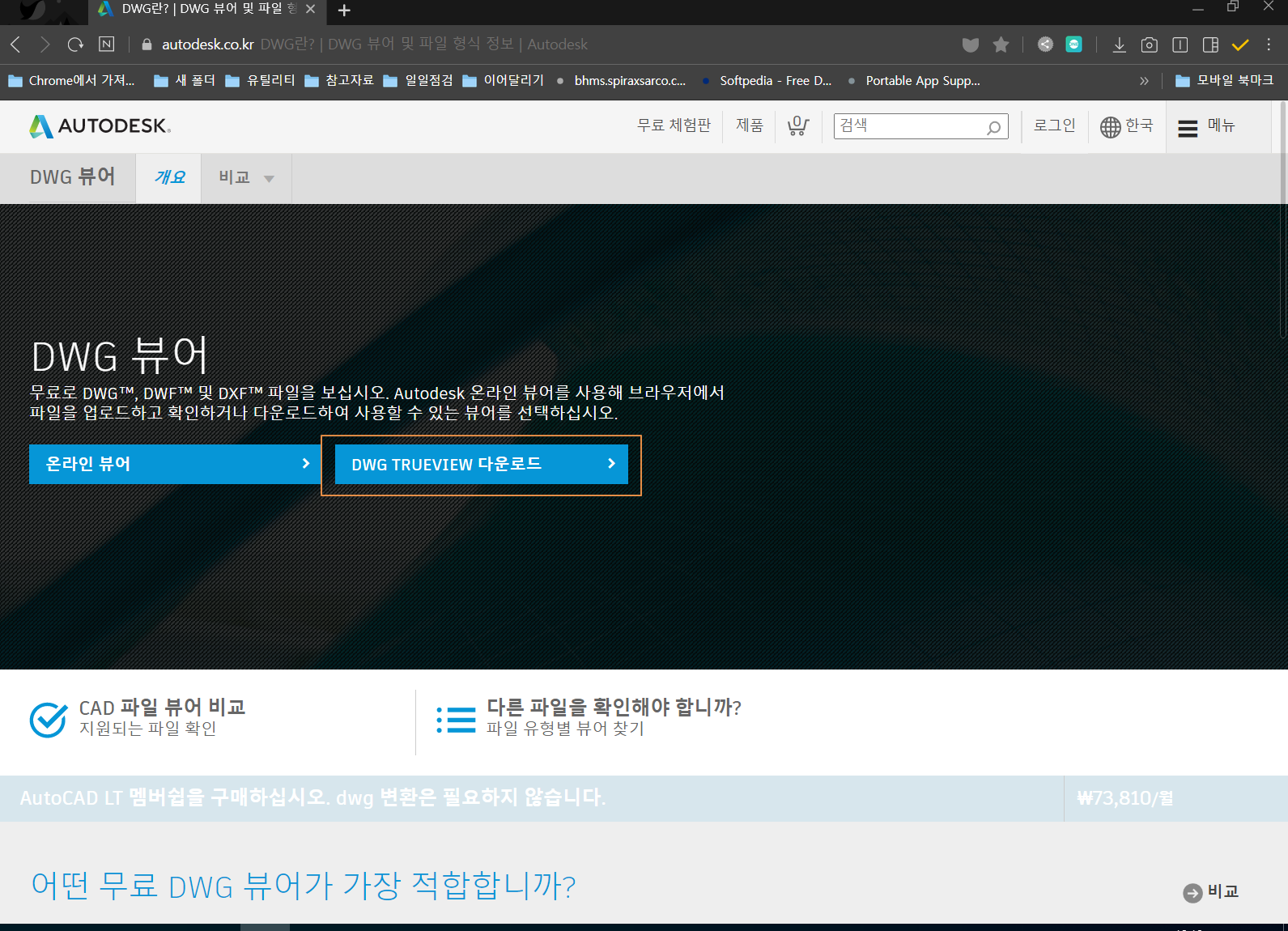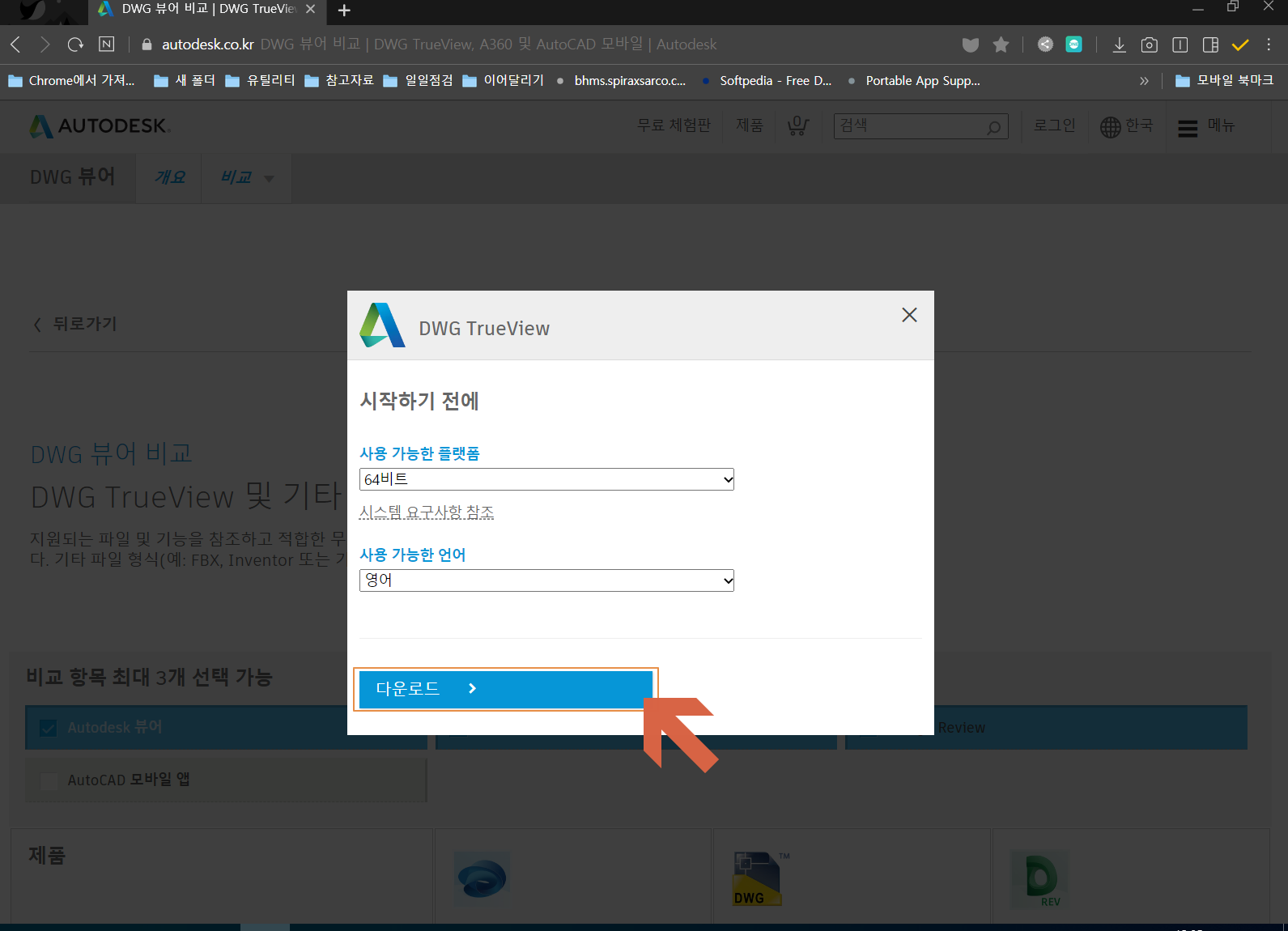 오토캐드 뷰어 다운로드 페이지로 이동합니다.