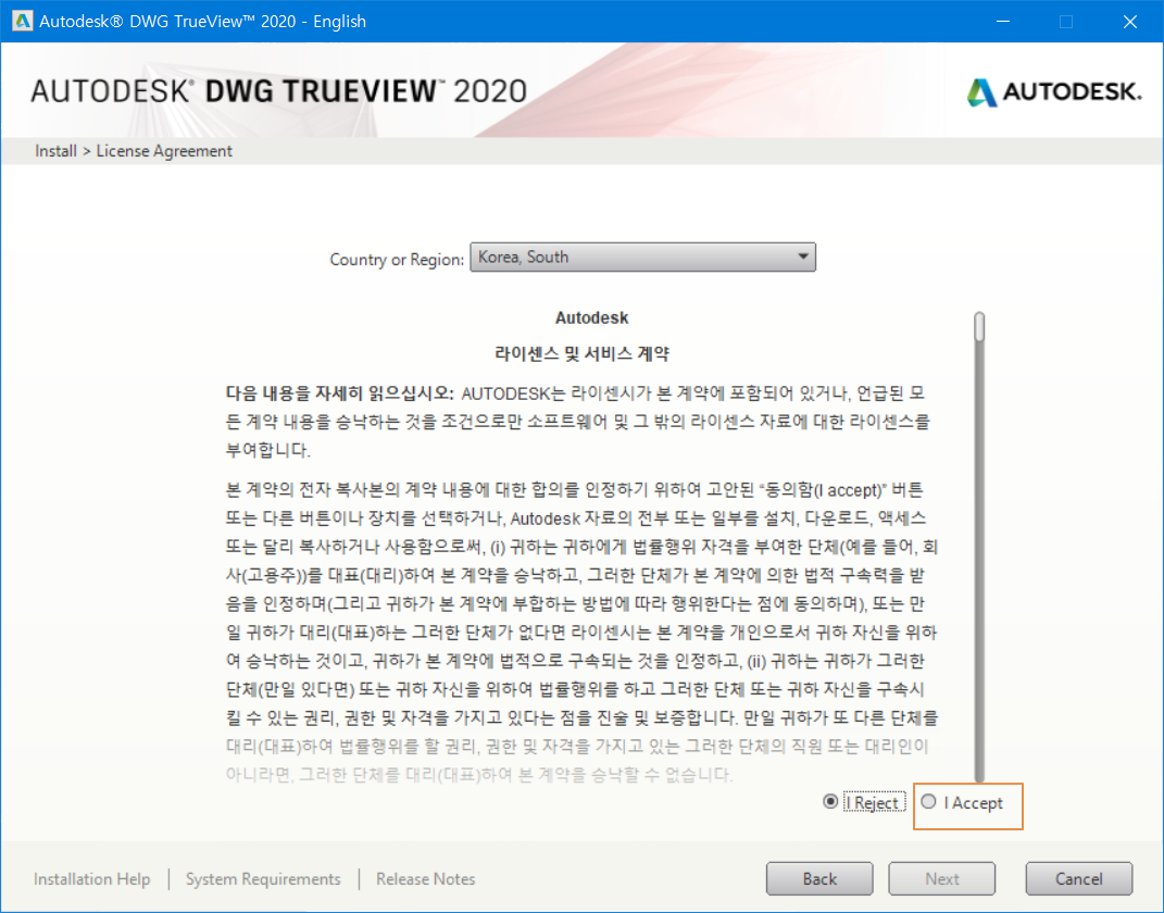 <I Accept>에 체크를 합니다.