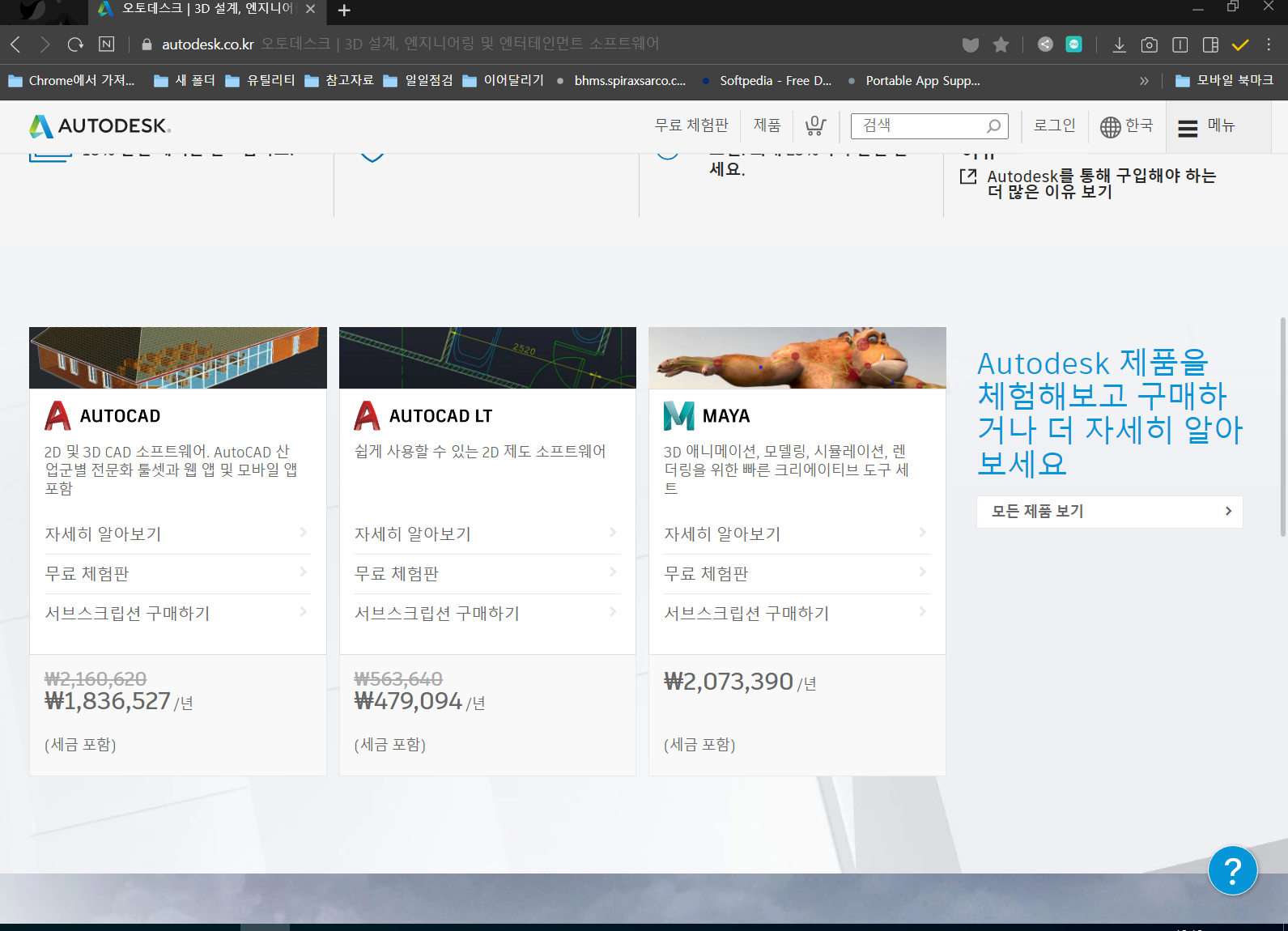 최근 오토캐드 구입 비용이 얼마나 하는지 잠시 찾아보았습니다. 여전히 쉬운 금액은 아니네요.
