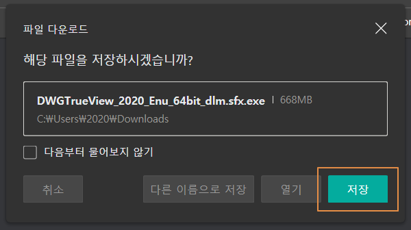다운로드 폴더로 이동하면 DWG TrueView 설치 파일이 보입니다. 설치 파일을 실행합니다.