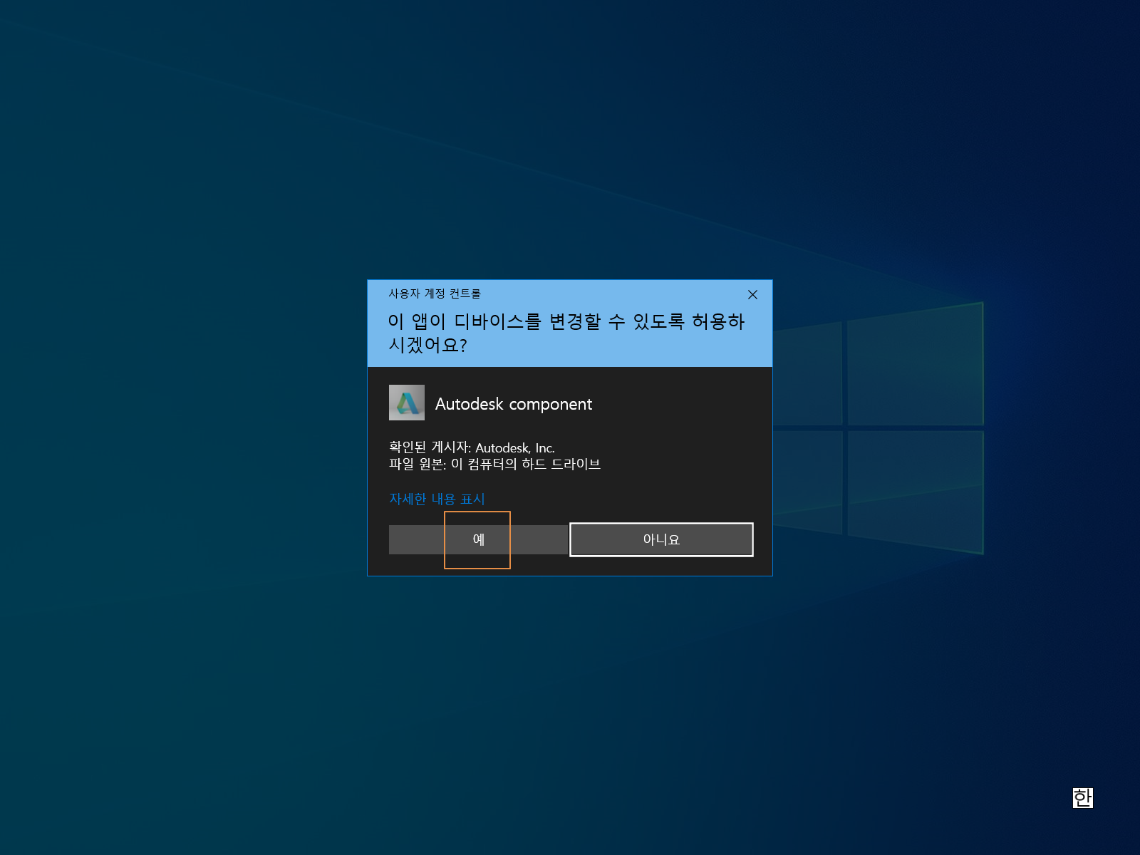 <예>를 누릅니다.