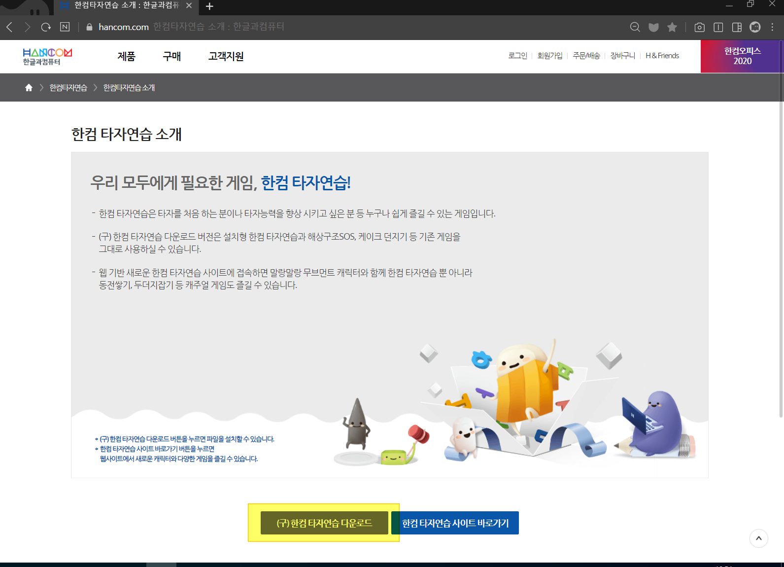 그럼 한컴 타자연습 구버전 다운로드와 설치 과정을 살펴볼까요?