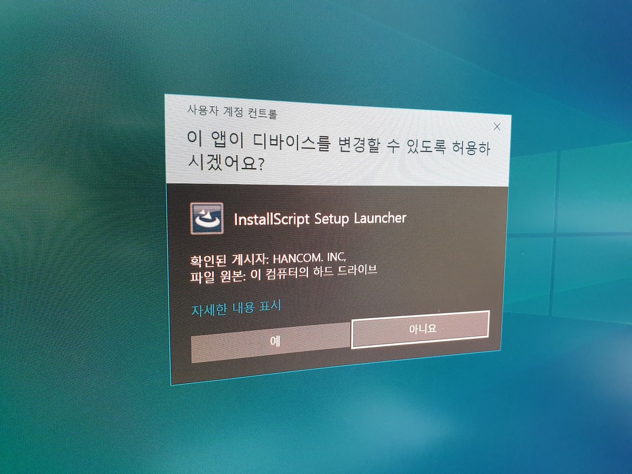 사용자 계정 컨트롤이 열리면 <예>를 누릅니다.