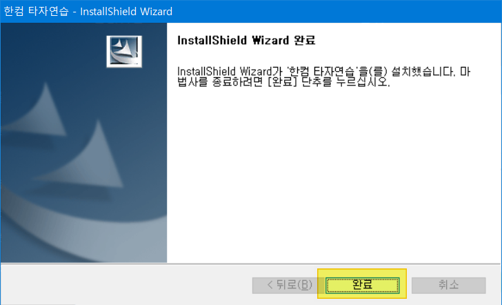 <완료>를 누릅니다. 이제 한컴 타자연습 프로그램이 설치가 완료되었습니다.