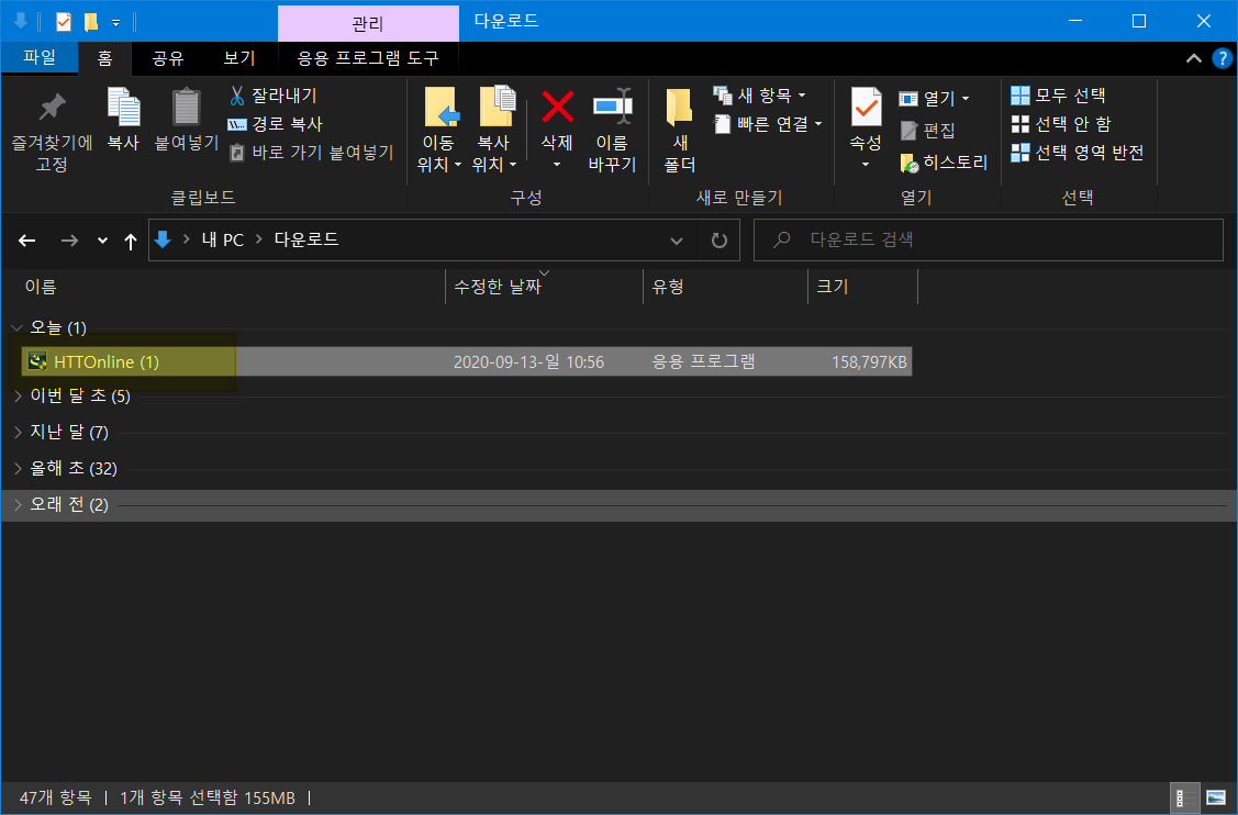 다운로드 폴더가 열리면 한컴 타자연습 설치 파일이 보입니다. 설치 파일을 실행합니다.