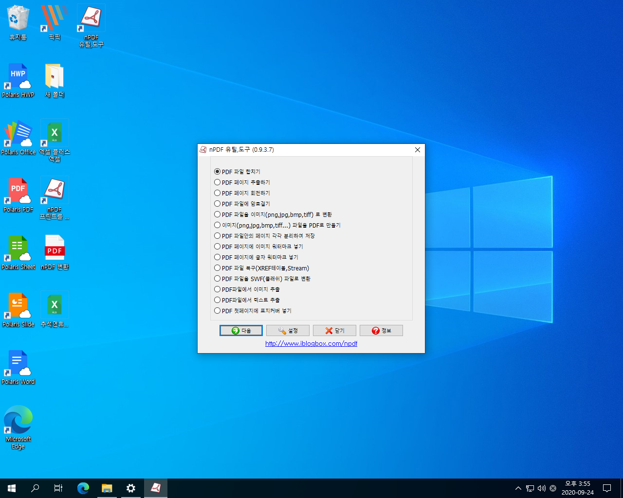 nPDF 유틸 도구를 실행한 모습입니다. 정상적으로 실행이 되는군요.