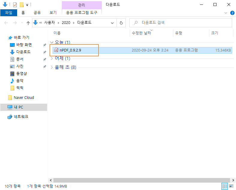 다운로드 경로로 이동하면 nPDF 설치 프로그램이 보입니다. 설치 파일을 실행합니다.