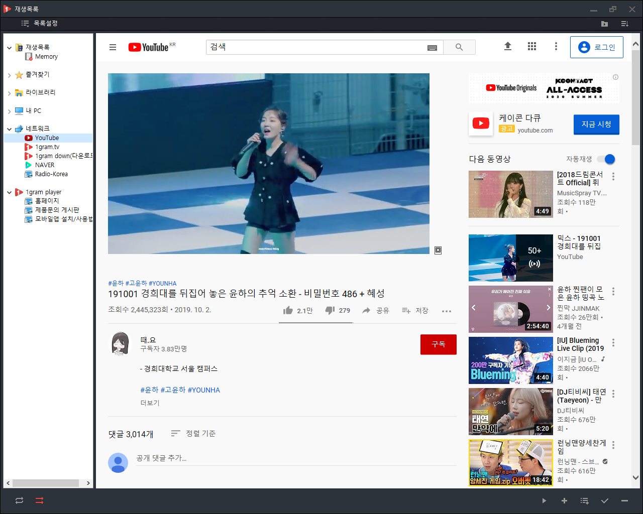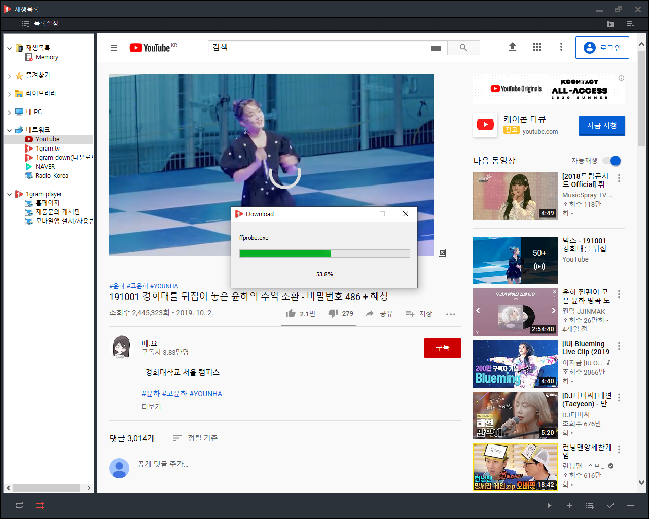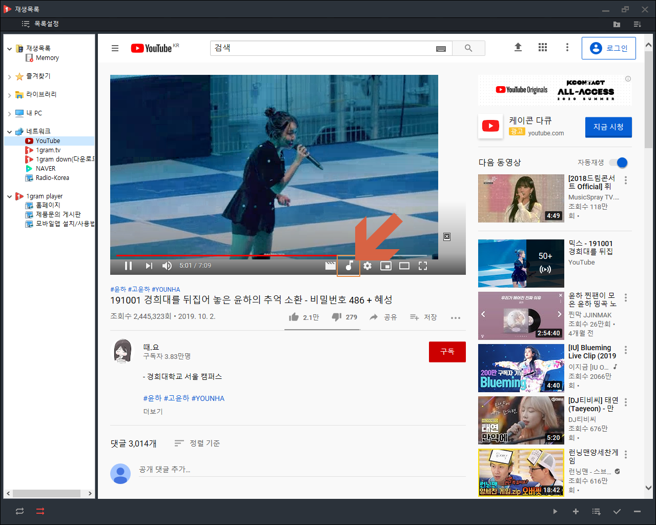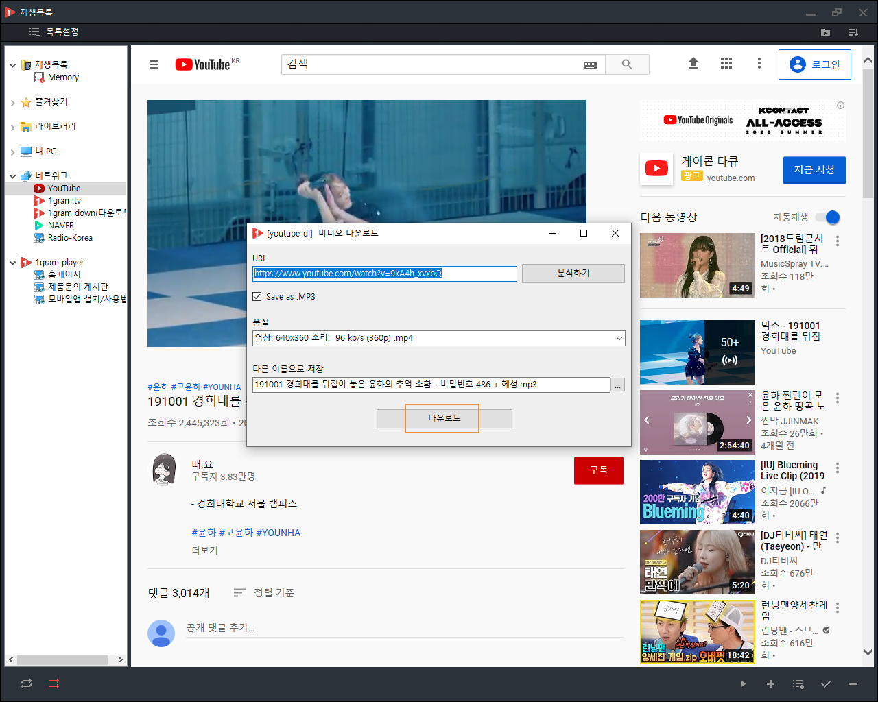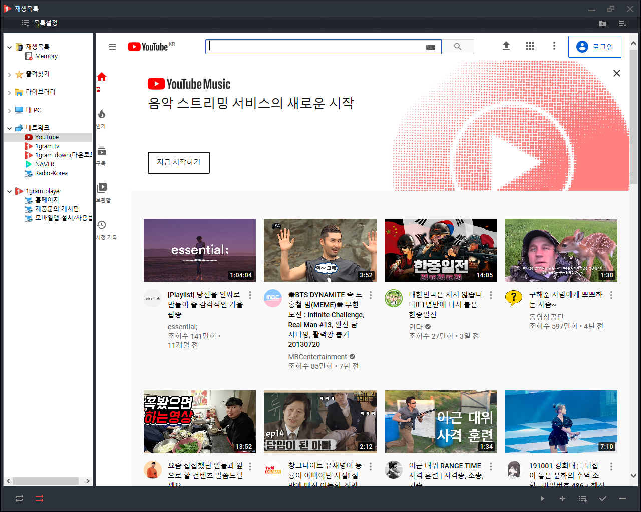 유튜브 음원추출 기능을 갖춘 1그램 플레이어(1gram Player)를 다운로드하려면 여기를 참조하세요.