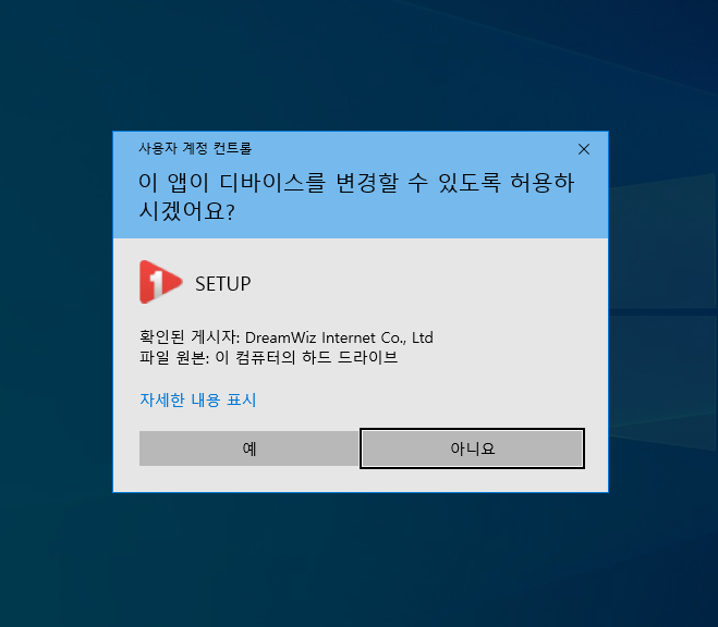 사용자 계정 컨트롤이 실행되면 <예>를 누릅니다.