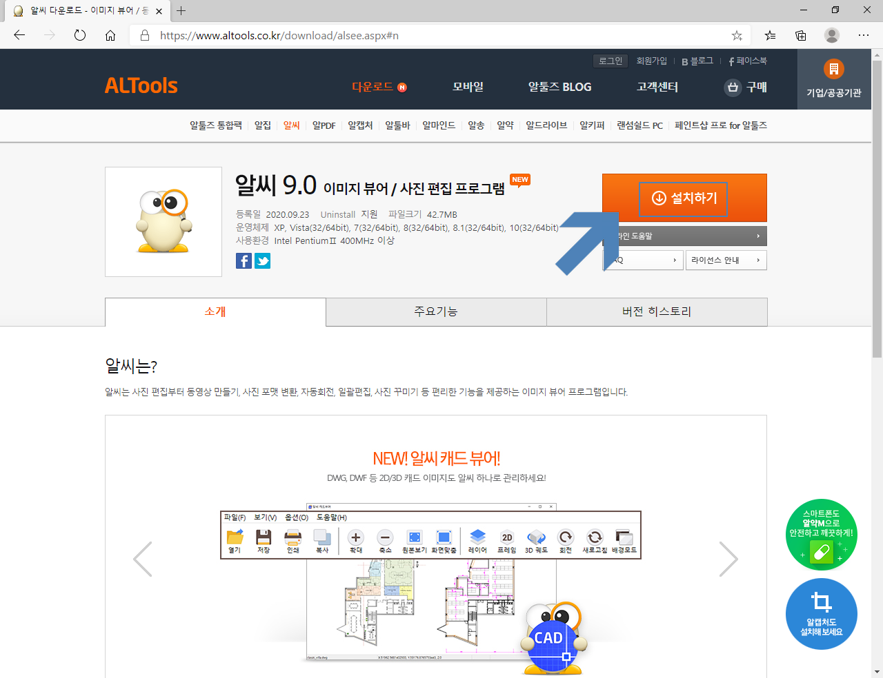 캐드 뷰어 기능까지 갖춘 알씨를 다운로드하시려면 여기를 참조하세요.
