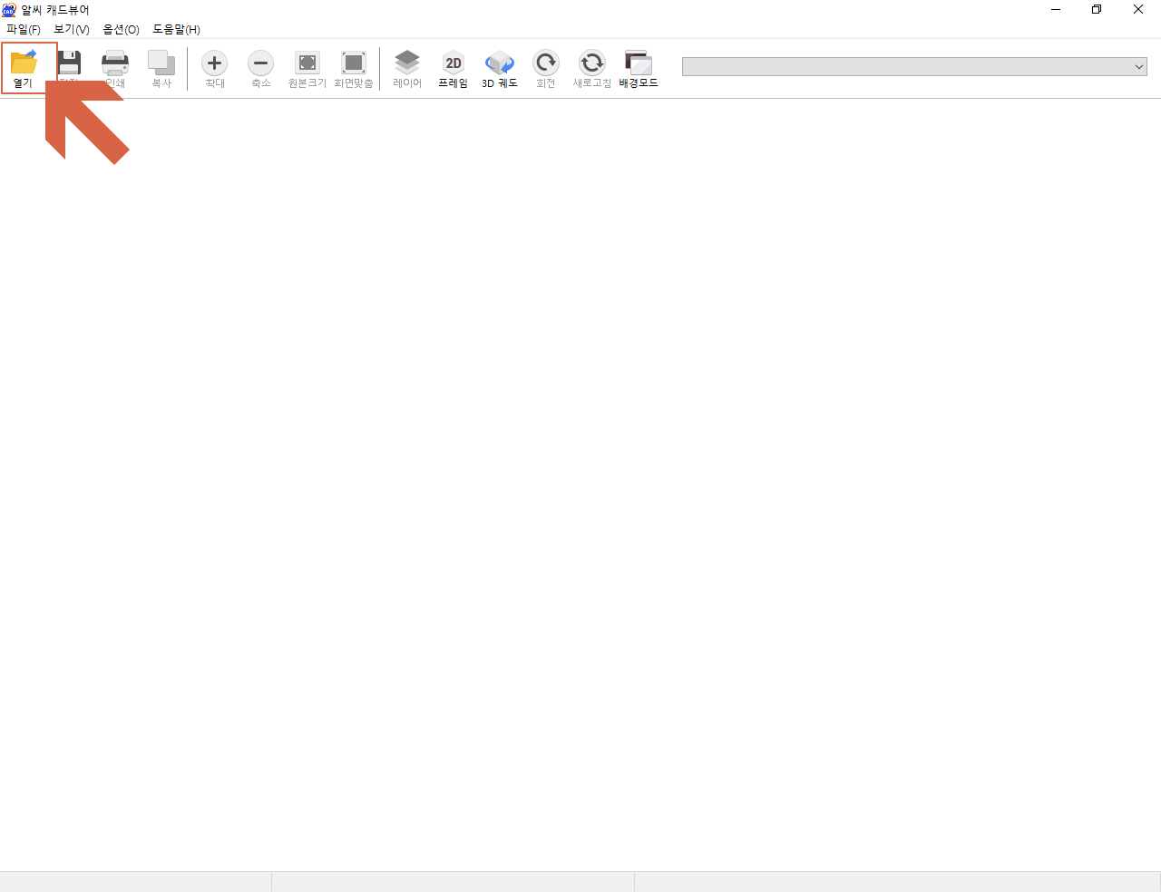 알씨 캐드 뷰어를 실행해 보았습니다. <열기>를 눌러서 DWG 파일을 열어보려 합니다.