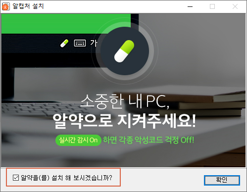 <알약을 설치해 보시겠습니까?>의 체크를 해제합니다.