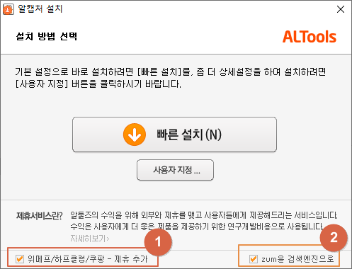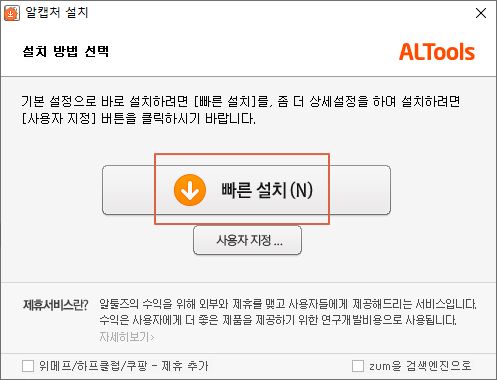 1번 <알집 추가 설치>를 체크 해제합니다.