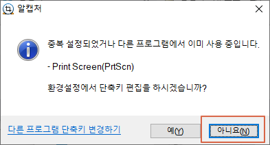 <아니요>를 누릅니다.