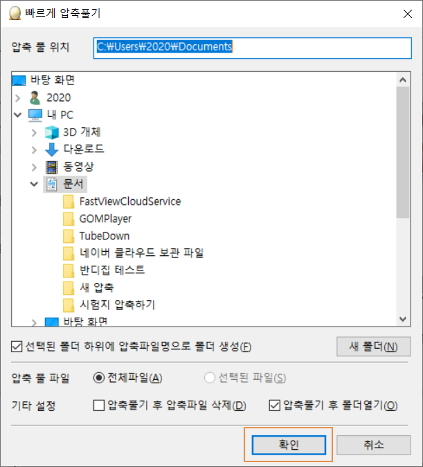 <폴더에 표시>를 누르면 윈도우 탐색기가 실행됩니다.