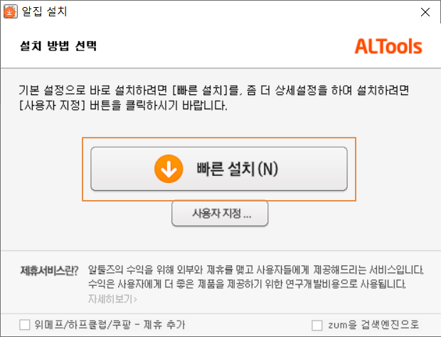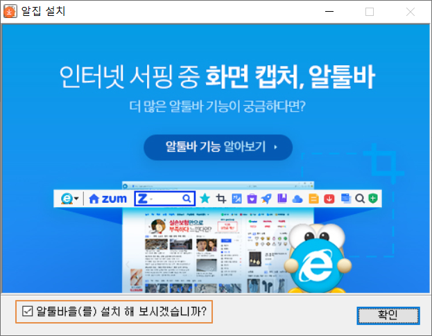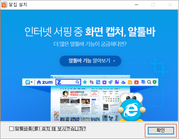 <알툴바을(를)설치 해 보시겠습니까?>에 체크를 해제합니다.
