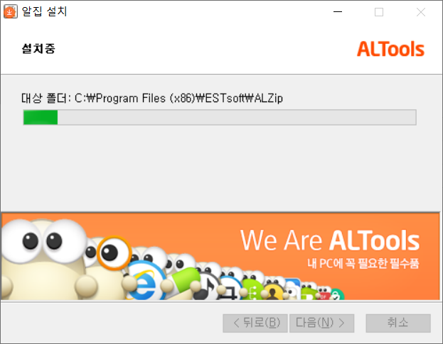 알집 설치가 진행 중 입니다.