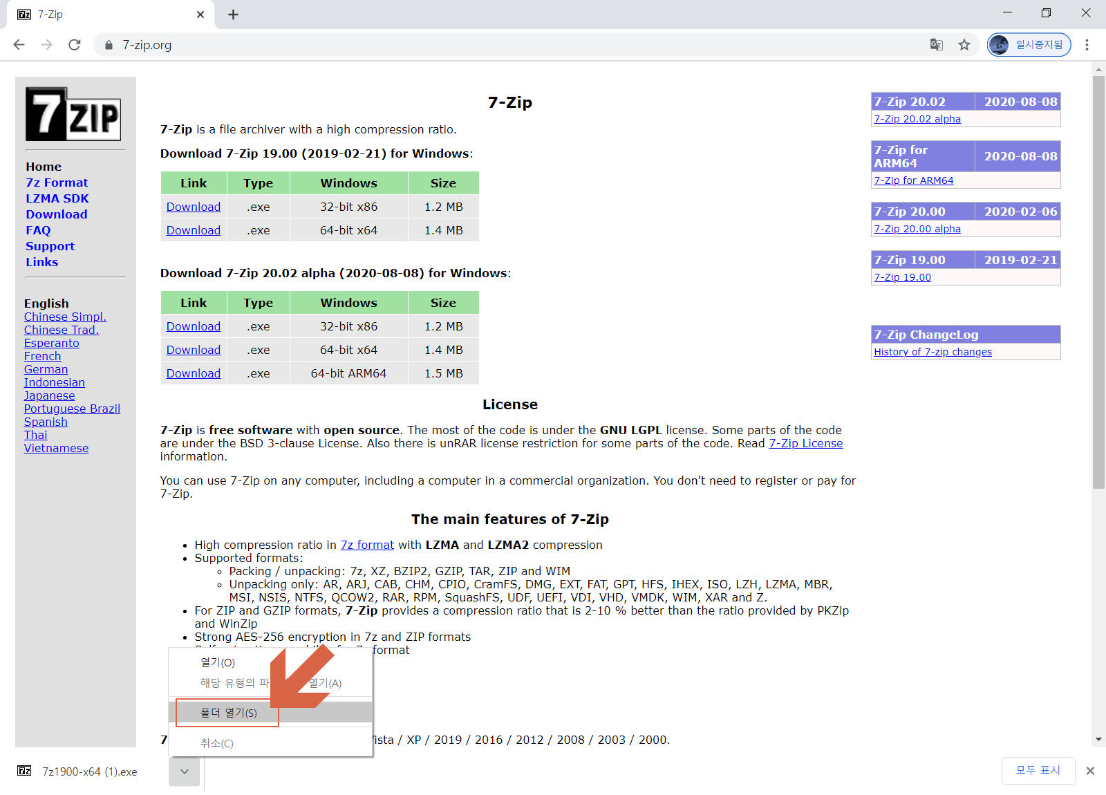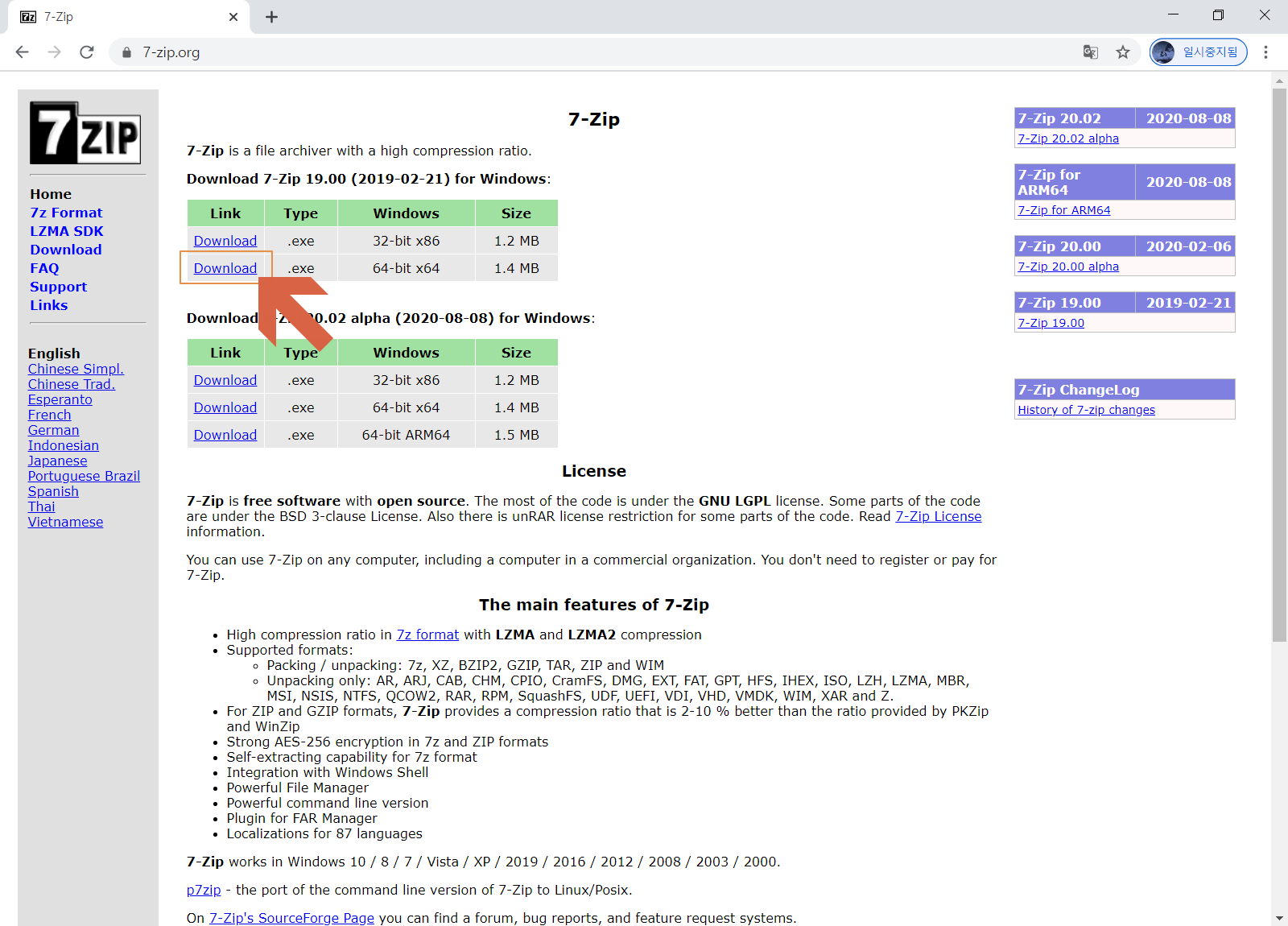 7Zip을 다운로드 하시려면 여기를 참조하세요. ▼