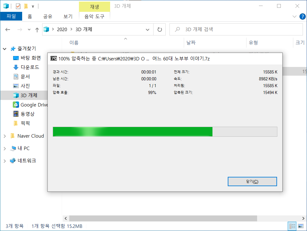 즉시 압축이 실행되어 7z 형식으로 압축이 되었습니다.