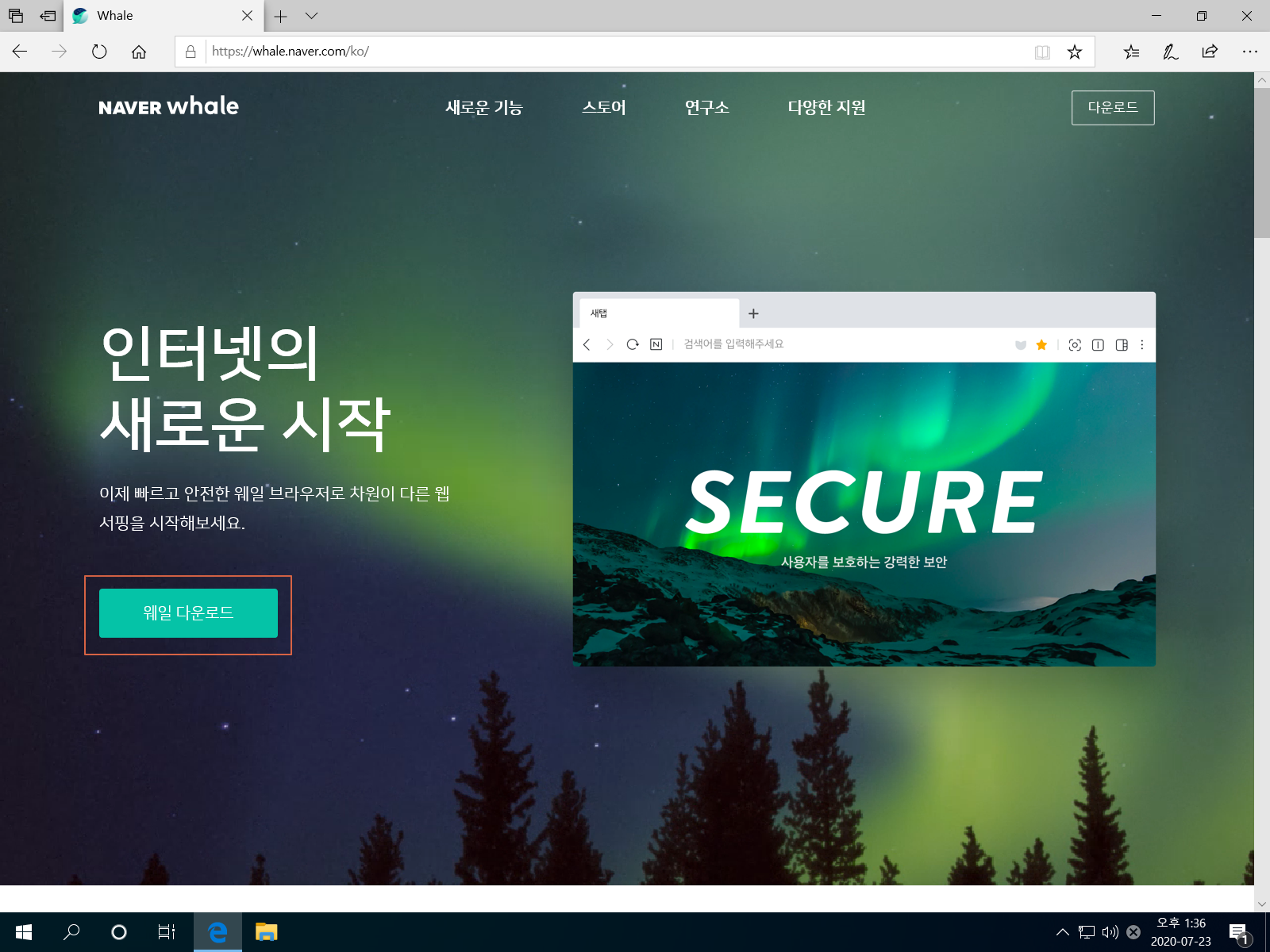 네이버 웨일(NAVER whale) 다운로드하려면 여기를 참조하세요.