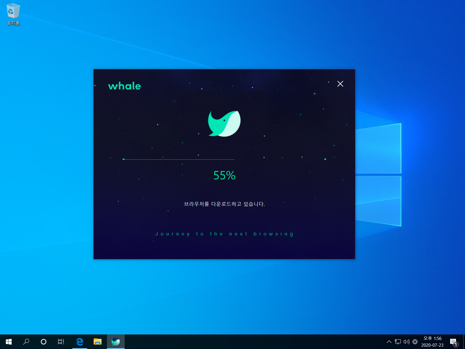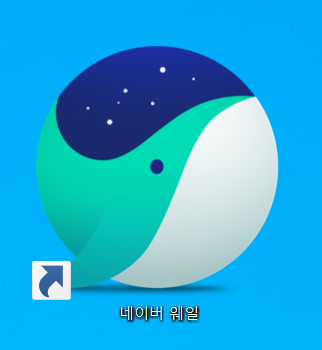 바탕화면에 고래 모양의 네이버 웨일 바로가기 아이콘이 생성되었습니다.