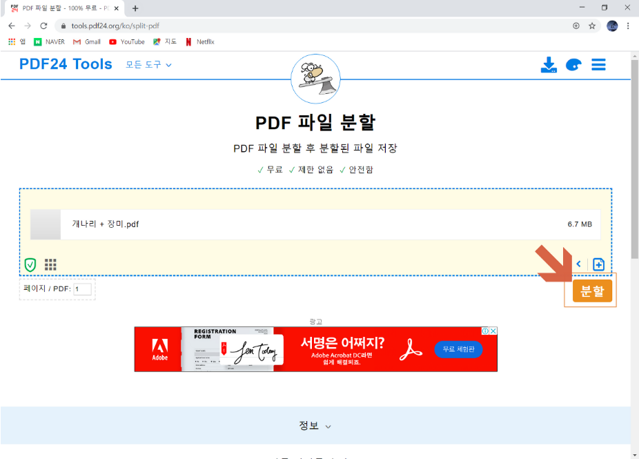 PDF를 몇 개의 파일로 또는 페이지로 나누기할 수 있는 기능을 활용하기 위해서 프로그램을 다운로드하거나 설치하지 않고도 인터넷만 연결되어있다면 웹 브라우저에서 이용이 가능합니다.