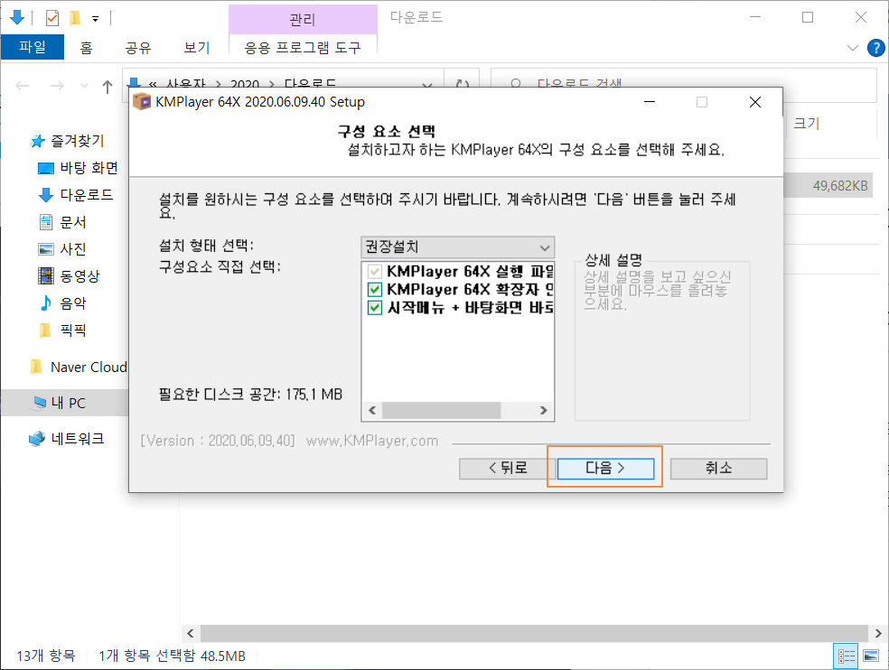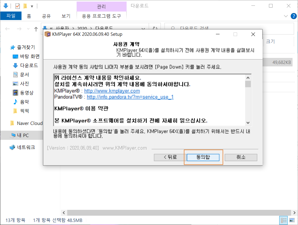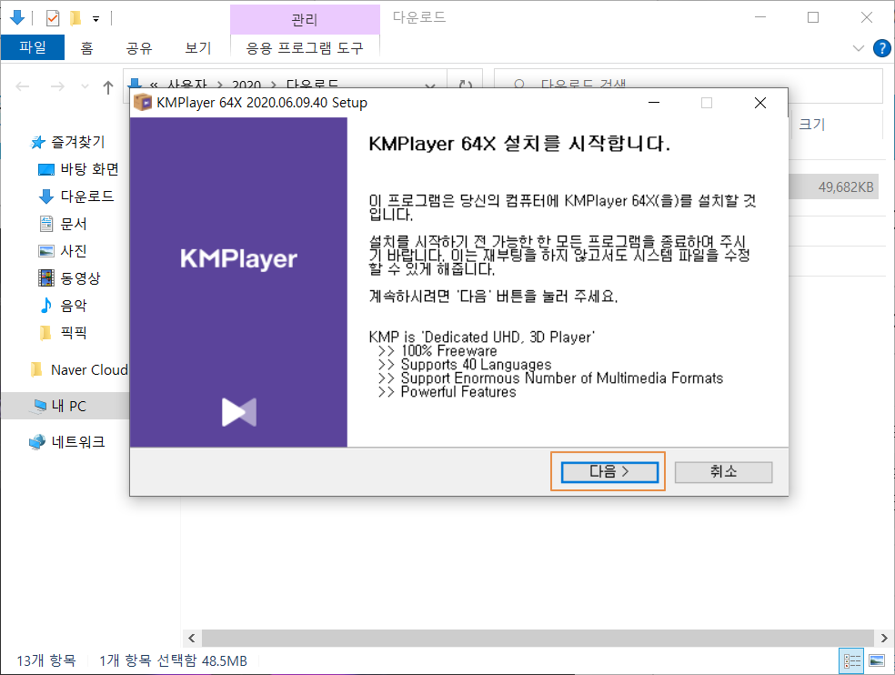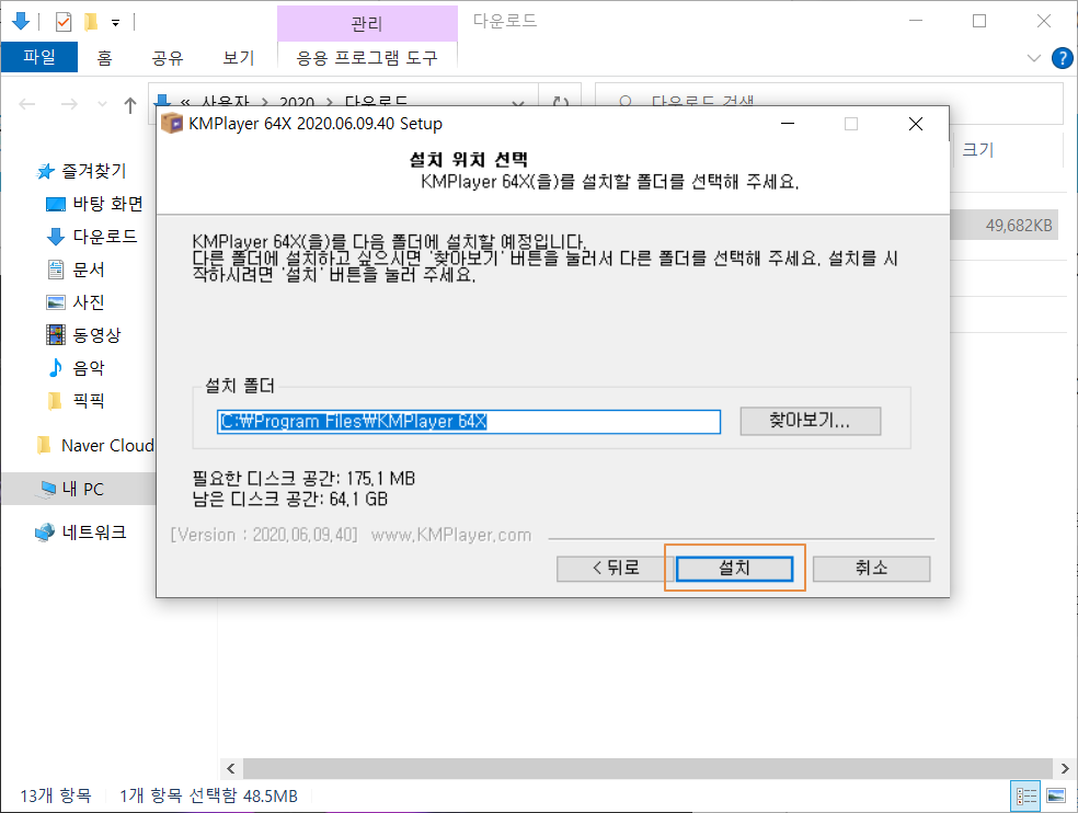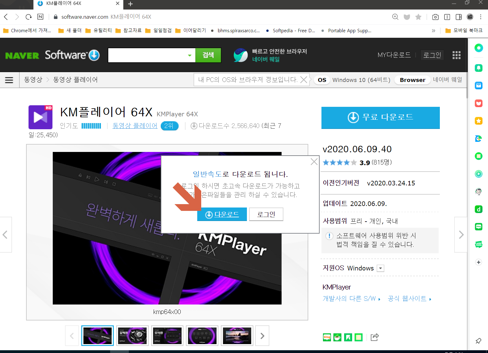네이버 소프트웨어의 KM플레이어 64X 다운로드페이지로 접속합니다.