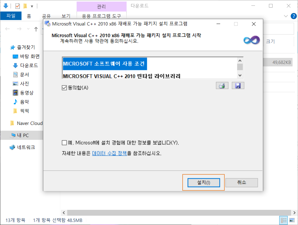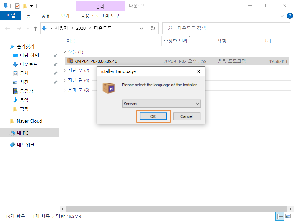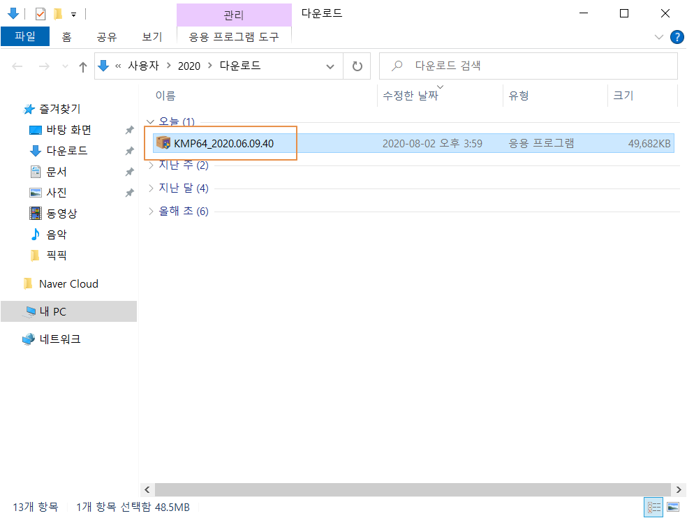 다운로드 경로로 이동하면 설치 파일이 보입니다. 설치 파일을 실행합니다.