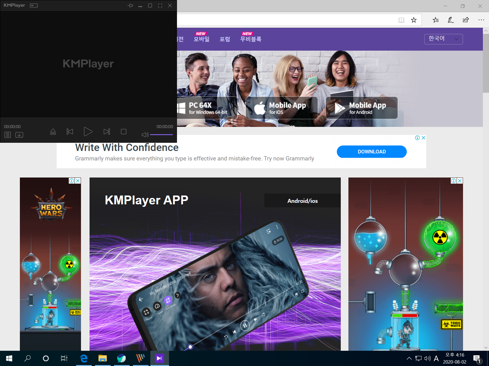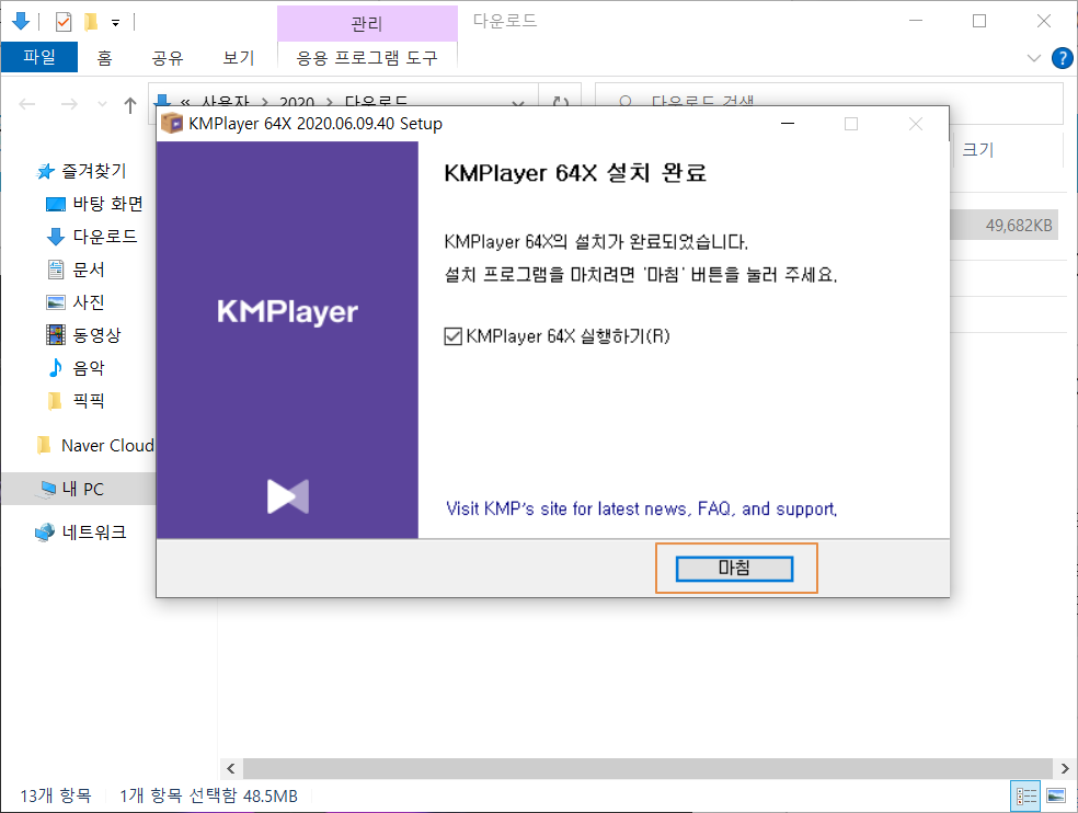 KM플레이어 64X 홈페이지도 같이 열리는군요.