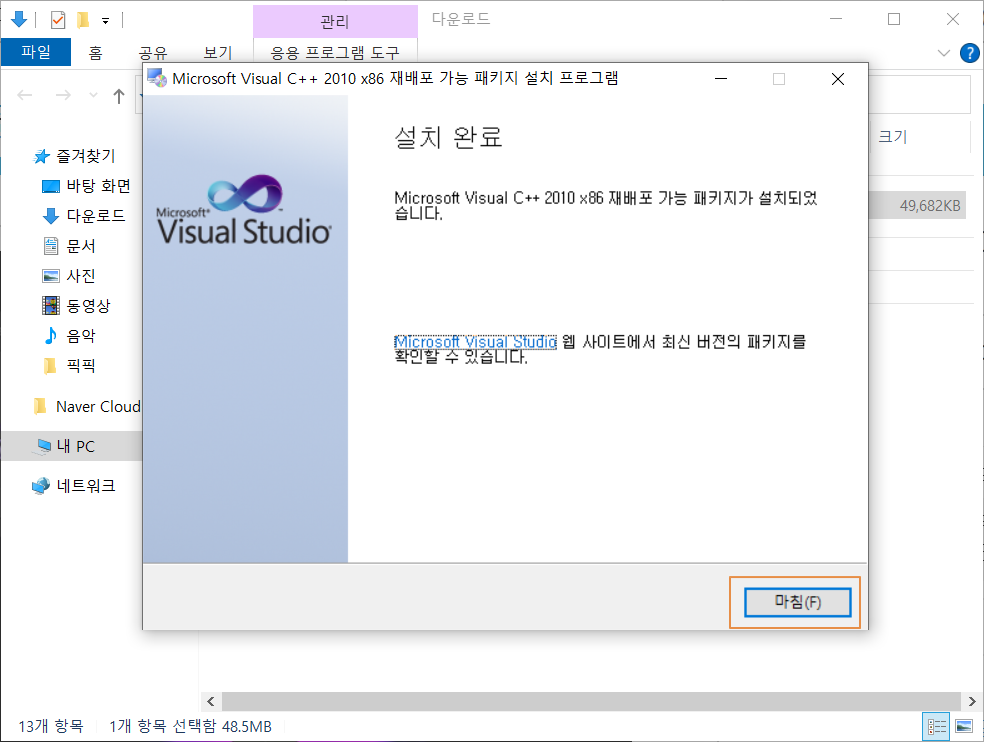 <마침>을 누릅니다. 이제 설치가 완료되었습니다.