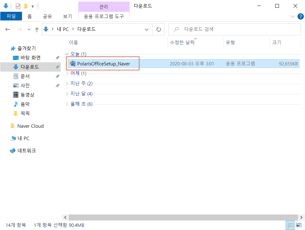 내려받기가 완료되면 다운로드 폴더로 이동합니다.