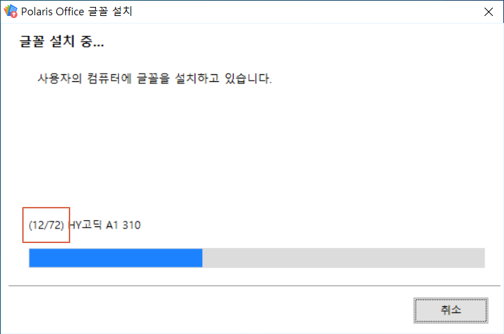 72개의 글꼴(폰트)가 설치가 됩니다.